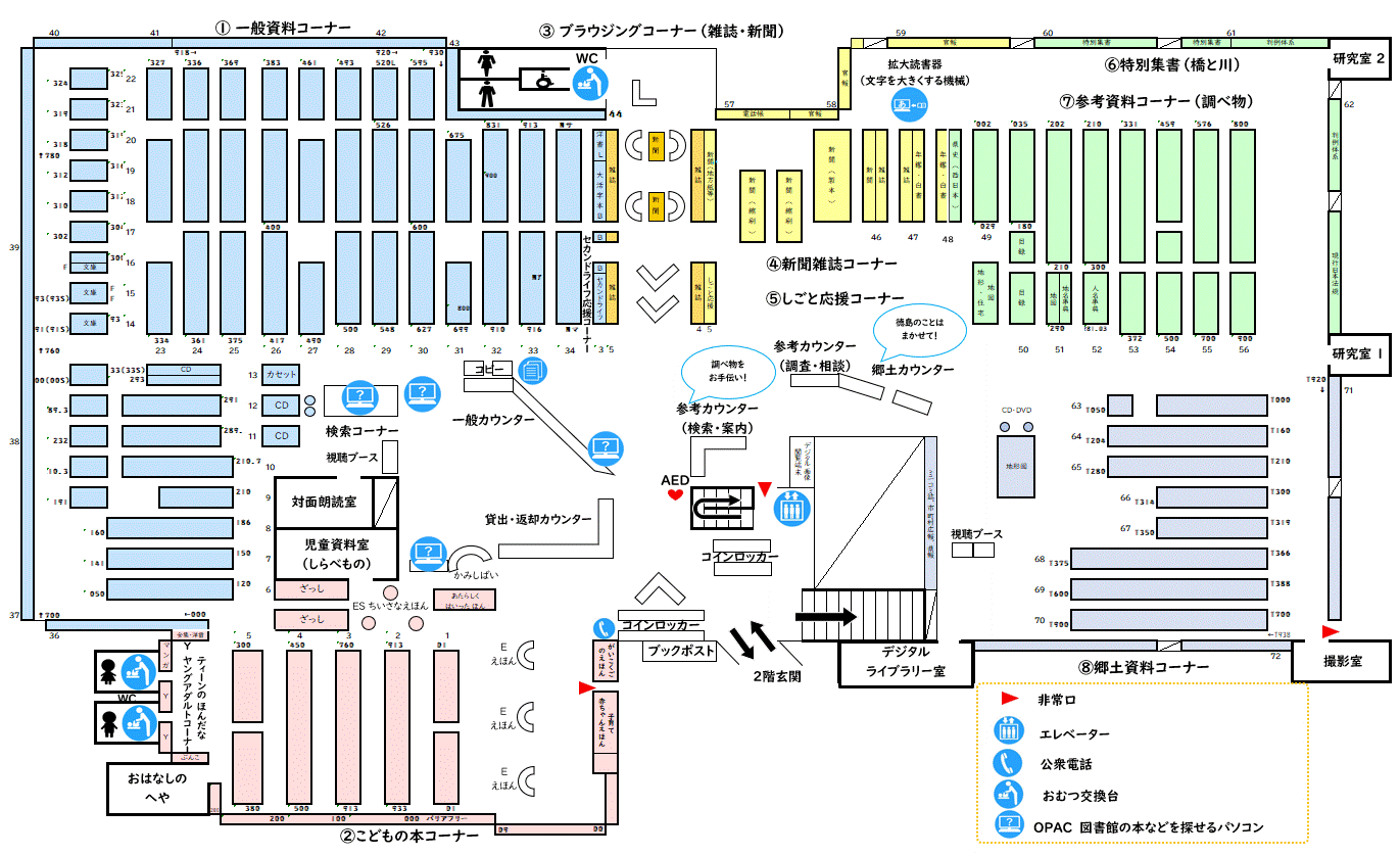 - 利用終了時には、図書館職員による原状復帰の確認・利用人数の報告のため、事務室にお越しください。