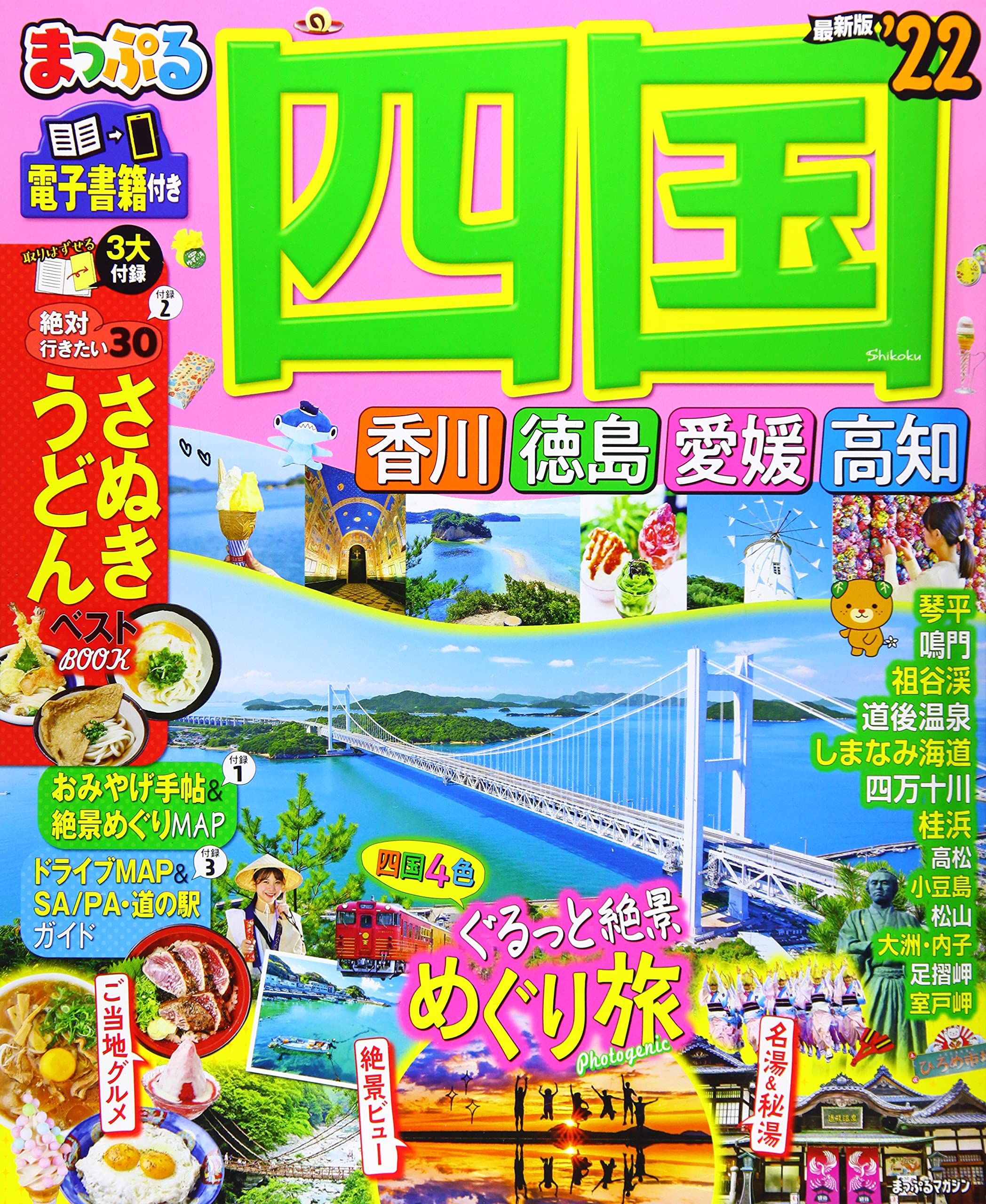 ![]() 大人気の道後エリアの徹底取材はもちろん、話題のしまなみ海道ドライブやサイクリング、石鎚面河・四国カルストの大自然や内子・大洲・卯之町などのレトロな町特集など。盛りだくさんの内容で愛媛旅をサポートします。取り外せる付録、「道後温泉おさんぽ手帖」には、話題のフォトジェニックスポットや、人気のグルメ、かわいいみやげ、さらにおさんぽMAPも!愛媛の魅力をぎゅぎゅッと詰め込んだ一冊です。 ※一部コンテンツが収録されていない場合があります。 ※電子書籍版にはデジタル付録「まっぷるリンク」は収録していません。 |