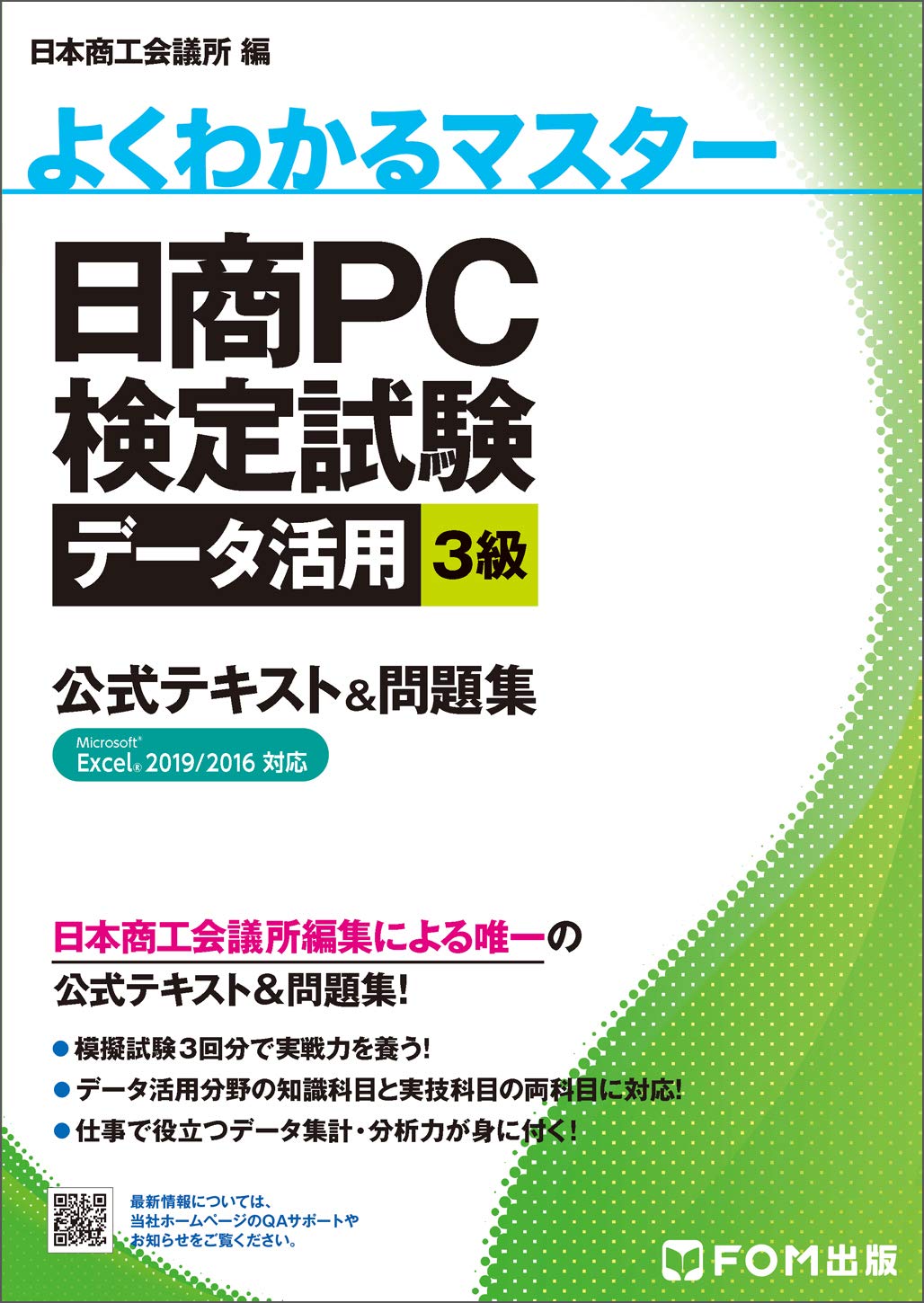 書 名:『よくわかるマスター 日商PC検定試験 データ活用 3級 公式テキスト&問題集 : Microsoft Excel 2019/2016対応』 よくわかるマスター
