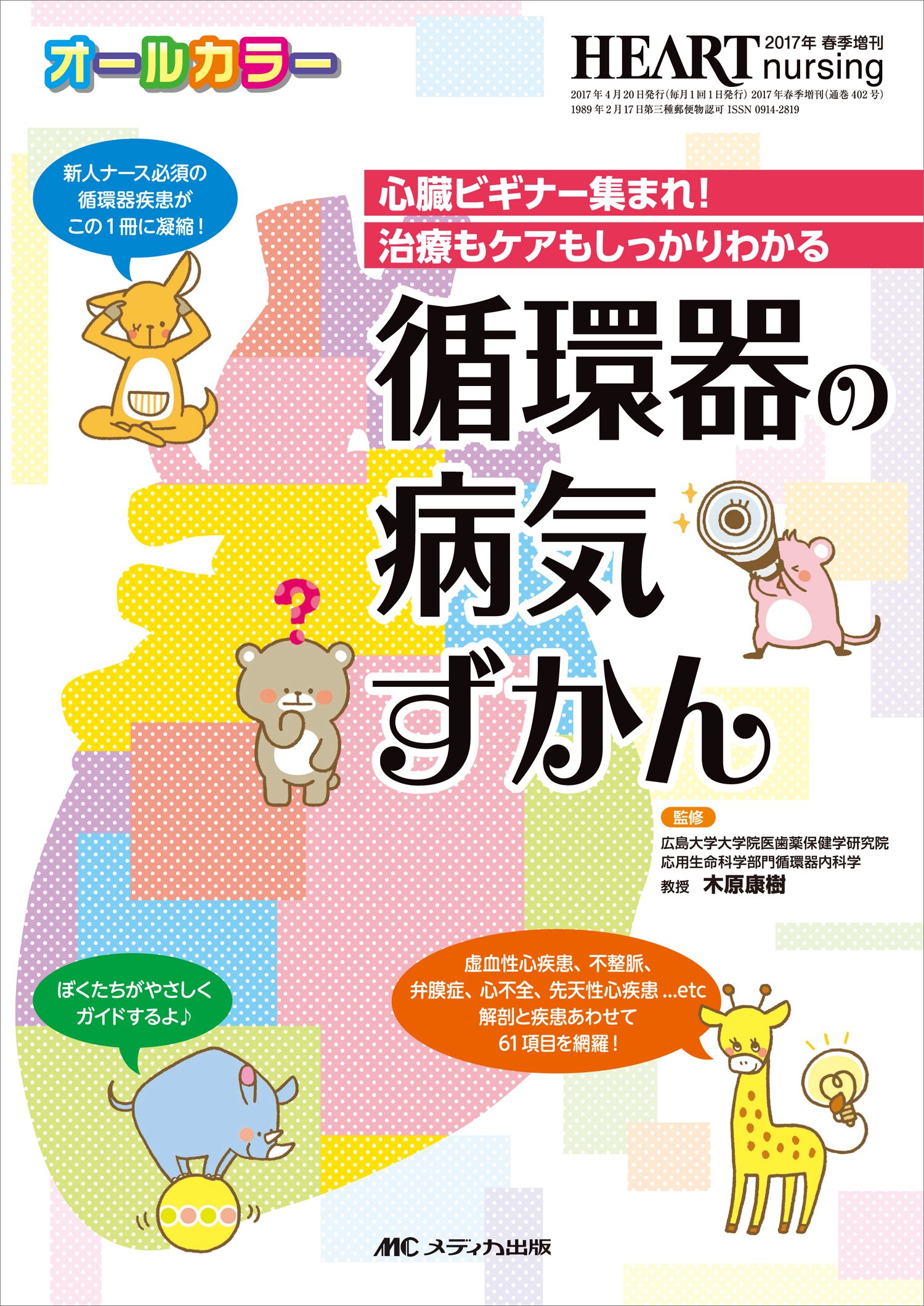 書 名:『循環器の病気ずかん : 心臓ビギナー集まれ! 治療もケアもしっかりわかる . 2017年春季増刊』 ハートナーシング