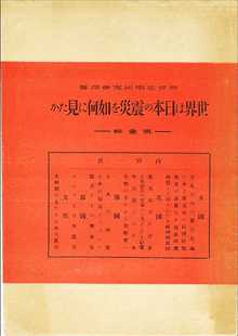 ![]() 本書は、米・英・仏・露・中の新聞・雑誌が、関東大震災をいかに報じたかについて、経済的関係、科学的見地、社会宗教的立場など、「いろいろの立場に拠って」見た記事を訳出したパンフレットである。 これら5か国は、「列国中、我に対する救護に於て最も厚かった」としている。 リテラリー・ダイゼスト、アナリスト、マンチェスター・ガーヂャン、レコノミスト・ユウロペン、ニュー・ロシア、密勒氏論報などのほか、より多くの新聞・雑誌からの引用もある。 世界パンフレット通信が発行し、日本評論社が発売したもの。 「パナマより日本に至る太平洋海底側面図」、「巴里サン・モール公園の地震自働記機に感じた日本の地震」などの口絵付き。 |