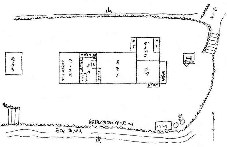 〔研究者と所属〕 藤目正雄・四宮照義 徳島県郷土建築研究会 〔発見者〕 四宮照義 〔要 旨〕 阿部には鎌倉以前の文献が見当らないから、生成については追求すべくもないが、制約の多い地理的条件から考えると、恐らく隠者、漂流者などが次第に住みついて村落を作って行ったものと思われる。藩政時代に入って完全に藩権力支配下に組入れられてからは他の外帯沿岸漁村と同様な形で発展して行ったが、地形的制約が規制した徹底的な密集農業、貧弱な磯漁業の伝統は阿部の民家建築風俗の上にかずかずの特色を残した。 成清丑太郎氏宅 主人の話では四代前に建築したというから約150年を経過している。阿部の「いたゞき」行商を経済的に支配して来たこの海産物問屋には藩政末期から昭和初期までの貸借帳、大福帳がダイドコの隅にあるチョーダンスにぎっしり納められていて当時の事情を明瞭に物語っている。 平面構成に於て客用、家族用と部屋が二分されているのは此の種富豪の住居に常に採用されているものである。客用部屋にはゲンカ、オクザシキ、カミザシキがあり、家族用の部屋にはニワ、ダイドコ、オクがある。その中間に位するレンヂは海産物問屋としての事ム用の取引部屋として使用された。レンヂの部屋より二階のザシキ、ナンドへ上る箱段が設けられている。二階には、ゲンカ、オク、レンヂ、ダイドコ、ニワの上部が当てられている。ダイドコの前のニワは以前カマヤであったが現在は裏のクラの「付け下し」に移してある。その横にインキョヤが建てられ、老夫婦の隔離された座敷となっている。オクはゲンカの後にあって、佛壇、タンス、夜具入れのトダナがあり、家族の寝室として使用されている。 松村秀雄氏宅・渡辺文刀氏宅 共に100年位前に建てたもので、ニワの左にオモテ、ナイショ、オクを有しオモテの部屋が末だザシキ(アガリタテとも言う)とオモテの二室に分離されていない平面構成をとゞめているものとして興味がある。このような平面構成を持つ民家は相当数阿部に残っている。 伊島の漁業構造は阿部とは多少異なり、外延性をもっている。藩政時代三度の移民が阿波藩の伊島開拓政策によって行われたと推定されるこの島には、キヌタの風俗があり、民俗学上にも興味深い問題を投げかけている。 川西元一氏宅 約80年以前の建築で、ニワ、オモテ、オクと横に並んだ併列三ツ目式平面構成をもったものである。山の中腹をけづりとって築いた敷地に建っている。ニワの奥の部分は下屋を葺下してムシロ敷のダイドコとしている。又西側にも葺下してモノオキを設けている。ベンジョ、ハシリ共にソトニワに設けられており、ソトニワの前面には高さ12尺の石垣を崖に築き、危険のないようにその上に船板の古材で柵を設けてある。 図(03minka2_fig01) |