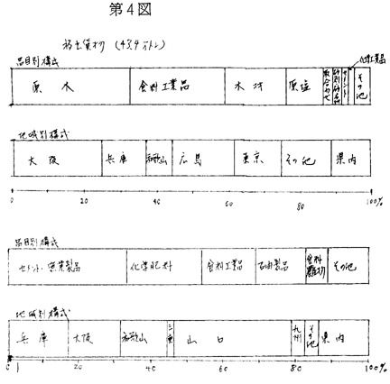 4.開港場に指定されているが、一般に考える昔風の貿易港的な性格を持つものでなく、「阪神に対する貯木のための外港」的性格が極めて濃厚であり、また今後地場産業が発達した時点においても原木輸入港の性格を持続するであろう。