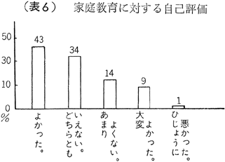 なお、彼らが今までうけた家庭教育をどう評価しているかについて見ると、客観的判断から、表6で示しているように、よかったというのが52%で、よくなかったというのが15%となっている。