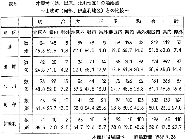 5 徳島新聞「阿部、伊座利の通婚圏」1969.9.28 |