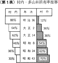 第1表 村内・多山林所有率推移