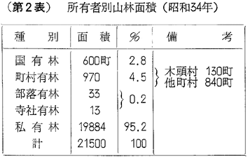 第2表 所有者別山林面積(昭和34年)