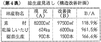 第3表 村内林家の階層別山林所有面積 第4表 総生産見通し