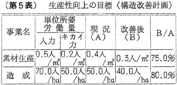 第5表 生産性向上の目標