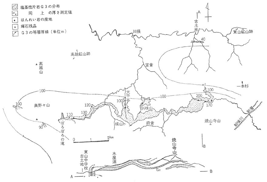 もし、このような調査を、他の青石―塩基性片岩層についても行なったら、本州地向斜内の古い海底火山を一つ一つ復原することができるであろう。
