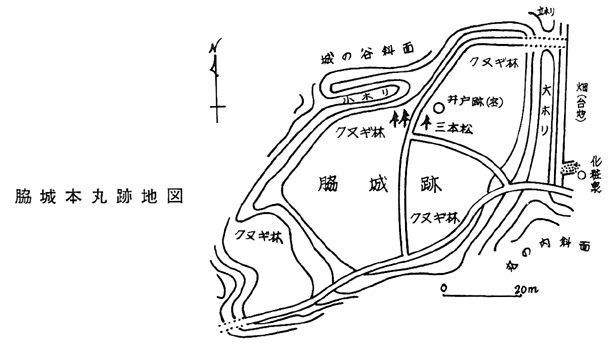 蜂須賀氏は阿波9城に重臣を配置して国内を鎮定していたのであるが、徳川幕府は元和元年豊臣氏を滅すと共に全国を統一して一国一城の令を出し、諸国の大名(藩主)の居城以外の城郭はすべて破棄せしめた。その時脇城も取除かれ今は山上(さんじょう)の3本松と空井戸がその跡を留めているのみである。