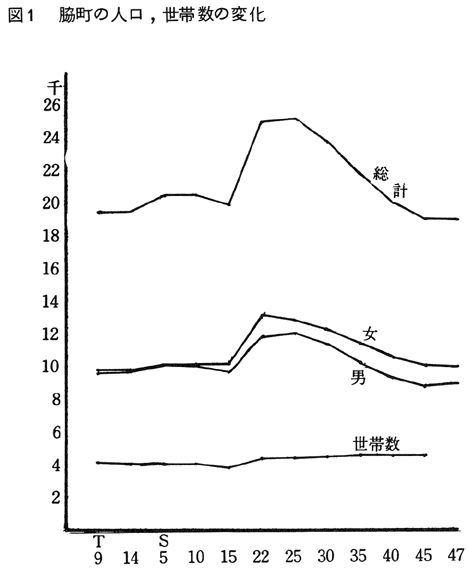 indica-tors)として人口、所得、産業等がおおよその特徴をとらえるのに便利とされているが、脇町の商業機能を見ていく上で、まずこれらについて概観してみることとする。