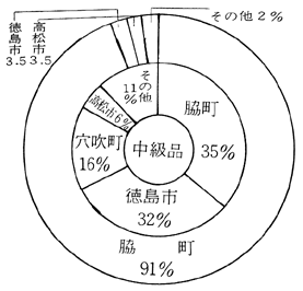 中級品については大部分が脇町で、残りは徳島市、穴吹町、高松市などとなっている。