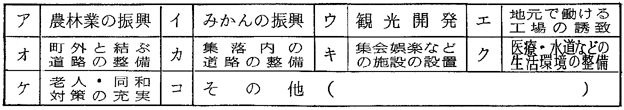 みかんの振興、2 地元で働ける工場の誘致、3 道路の整備、4 老人・同和対策、5