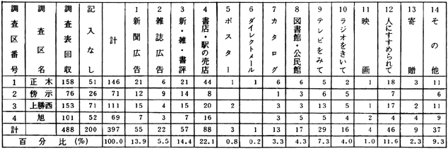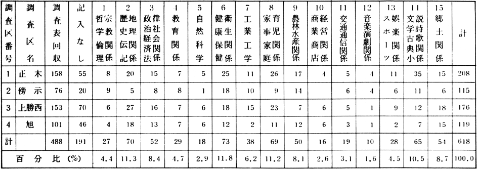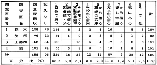 今年の読書週間の標語は「本との出会い、豊かな心」であります。上勝町の方がたが、どういう具合いに本との出会いをもち、徳島県立図書館とか、町の公民館などとどういうふうにかかわりあいを持つかというのが、この読書調査のねらいであります。
