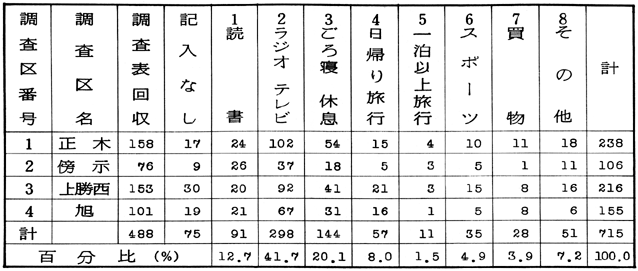 この四調査区ごとに各項目について集計しましたところ、四地区それぞれの地域性がでてたいへんおもしろいものであります。