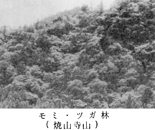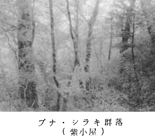 紫小屋の海抜約1100mより上、尾根までブナ林があるが、これは野間部落の水源涵養保安林として、伐採されずに保護されてきたもので、ここではスズタケを伴わない。前述の雲早山のブナ林にくらべ湿潤で、サワグルミやチドリノキ、クサアジサイ、モミジガサなどの湿潤地指標種を含んでいる。そして亜高木層ないし低木層にシラキがよく出現している。高木層構成種は、ブナ(樹高13〜15m、胸高直径40〜50cm)、イヌシデ、コハウチワカエデ、ハリギリ、アズキナシ、トチノキ、サワグルミ、アオダモなどで、亜高木層にシラキ、ヒメシャラ、リョウブ、コハクウンボク、アオハダ、エンコウカエデなどが多く、低木層にベニドウダン、ツクシシャクナゲ、シロモジ、クロモジ、タンナサワフタギ、ヤハズアジサイ、オトコヨウゾメ、オンツツジなどがあり、草本層にはミヤマクマワラビ、ヒメコウモリソウ、シコクトリアシショウマ、オオヤマハコベ、ナガバノスミレサイシン、ムカゴイラクサ、ウワバミソウ、ツルカノコソウ、イワボタンなど多種類が生育している。 2 モミ・ツガ林 常緑広葉樹よりなる暖帯林と、落葉広葉樹を主とした温帯林との間に推移帯がみられるが、これは地域により落葉樹林(コナラ林やクリ林)がこの帯を占めることもあり、また、モミ・ツガ林が安定相をなすこともある。この中間帯の範囲は、暖帯林の生活範囲(暖かさの指数85℃以上、寒さの指数−10℃〜−15℃以下)よりやや寒冷であると、考えられる。調査対象地域内でこの中間帯にあたる海抜高のところは、殆んど人工植生または代償植生におき代っているため、前述の様相を呈する群落は、わずかに焼山寺山頂付近にみられるだけである。ちなみに焼山寺山(海抜930m)の暖かさの指数は79.4℃、寒さの指数−19.6℃、で丁度中間帯にあたることがわかる。
