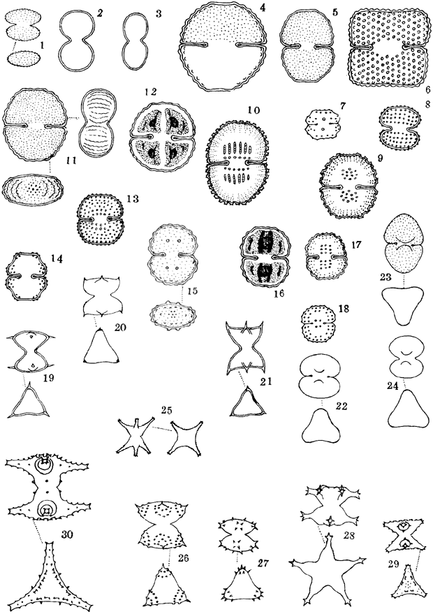 Breb. 25.St. paradoxum Meyen var. parvum West 26.St. denticulatum