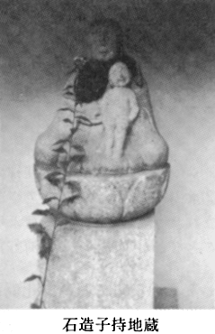 所在地 池田町洲津 滝の不動さん前 寸法 上幅23糎 下幅30糎 長さ57糎 2条線 中央蓮台の上に、弥陀如来を示す種子(しゅじ)キリークが彫られている。 鎌倉時代末期の造立と推定。 特に注意すべきことは、この板碑が三好郡以外の地域から移転されたものでなく、当初から現地に造立されたものとすると、本県における現存板碑の西限を示すものとなる。今後の検討をまって決論を出したいと思っている。 (b)石造子持地蔵
