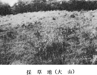 人工植生・耕作地植生 〔9〕採草地 海抜510mの大山寺西方にアカマツ林を伐採して中国・四国山地酪農中核試験場が設置された。昭和51年頃にはヒメスイバが播種されていた。昭和55年9月15日現在、採草地として利用されている。主な構成種は次のとおりである。 ススキ、オオアレチノギク、ウシハコベ、イヌタデ、イタドリ、カモガヤ、ヘクソカズラ、チカラシバ、シロツメクサ、シマスズメノヒエ、アリタソウ、アメリカスズメノヒエ、アキノノゲシ、ノダイオウ、ヒメムカシヨモギ、メリケンカルカヤ、アカツメクサ、タケニグサ、ニガイチゴ、ホドイモ