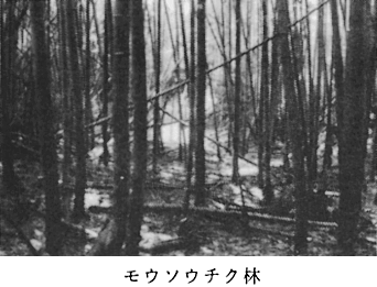 キヅタ、フジ、テイカカズラ ・低木層 樹高2〜3m、植被率5% ヒサカキ(1.1)、ヤブツバキ、アオツヅラフジ、オニドコロ、ニガガシュウ、コマユミ、テイカカズラ、イロハモミジ、サネカズラ、ノグルミ、ヤマウルシ、コシアブラ、ヤブムラサキ ・草本層 樹高0〜0.8m 植被率90% ミズヒキ(2.2)、タラノキ、ヤマムグラ、ゼンマイ、ドクダミ、イタドリ、キカラスウリ、カキドオシ、サネカズラ、フユイチゴ、クサギ、ツタ、チヂミザサ、フジ、キチジョウソウ、ベニシダ、ヤブニッケイ、イボタノキ、シロダモ、ヒメイタチシダ、ヤマアザミ、クマワラビ、イヌツゲ、ホドイモ、アオミズ、ベニバナボロギク、スイカズラ、ツルマサキ、ケマルバスミレ、ヤブムラサキ、ヒメドコロ、ヌスビトハギ、ツルニンジン、ノブドウ、カラムシ、コマユミ、カナクギノキ、サルトリイバラ、ヤブラン、ウバユリ、キツネノマゴ、コナスビ、イタビカズラ、ヤマイタチシダ、チャノキ、ジャノヒゲ、カゴノキ、アオテンナンショウ、ナガバノウナギツカミ、ナガイモ、フキ、ナガバモミジイチゴ、アオキ、ツクユサ、ヤブツバキ、ナワシログミ、ヤブマオ、ヒキオコシ、ヒヨドリバナ ※数字のないものは+ 〔10〕−II モウソウチク林 調査 昭和55年9月15日、場所 大山寺下、海抜400m、方位 S60E、傾斜 10゜、調査面積 15×15平方メートル