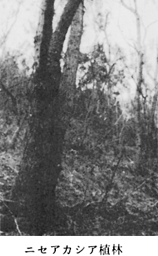 ・高木層 樹高10〜15m、植被率95%、胸径10cm モウソウチク(5.5) ・亜高木層 樹高5〜6m、植被率5%、胸径18m ヤブニッケイ(1.1) ・草本層 樹高0〜0.8m、植被率5% キヅタ、サネカズラ、ドクダミ、イタドリ、ヒカゲイノコズチ、キチジョウソウ、マサキ、テイカカズラ、ジャノヒゲ、セントウソウ、ツタ、ヤブニッケイ、カゴノキ、チャノキ、ヒメドコロ、ハナミョウガ、ヘクソカズラ、ネズミモチ、ヤブラン、スイカズラ、タラノキ、サンショウ、アオキ、ユキモチソウ、ヤマウルシ、ハエドクソウ、ミゾソバ、ノブドウ、ベニシダ、ヤブマオ、コガクウツギ、モミ、イタビカズラ、ヒサカキ、ヤマジノホトトギス、ナツフジ、マンリョウ、ゼンマイ、ツユクサ ※数字のないものは+ 〔1〕ニセアカシア植林 ニセアカシアは讃岐山脈ぞいの崩壊地によく植林され、本町では盗人谷上流の海抜200mのダムの左岸に植林されている。この種類はマメ科の仲間で原産はアメリカである。日本には明治8年津田仙氏が持ち帰ったと伝えられている。この樹は浅根性で、萌芽力が著しく、緑肥・飼料として利用することができる。