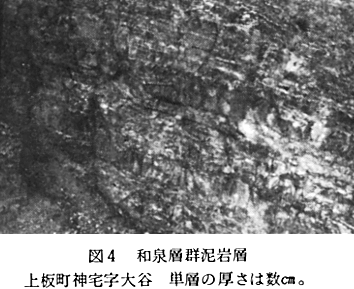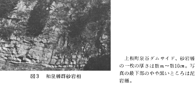 上板町内では、砂岩相は泉谷流域に発達しており、泥岩相は宮ケ谷流域〜大谷地域にかけて顕著である(図3・4・7参照)。