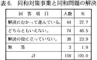 (4)同和対策事業と同和問題の解決 「同和対策事業によって同和問題が解決されつつあると思うか」とたずねたところ、表6のようになった。