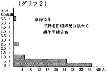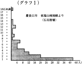 だと言えるが、このようにして記載された者には低石高の者が多い。次のグラフは、石高所持の有様を表したものである。