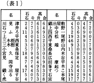 このように田の石盛りにおいては、上田で1石1斗の開きがあるが、畠では、上畠で2斗の開きしかない。中下畠以降は、東端山の石盛りが高くなっている点が注目される。 このように慶長11年の検地帳の記載は、それ以後の検地と違い、村、名などの単位が大まかである。このことは、支配単位がまだ細分化されていないことを意味している。また、名負人の中に政所の名まえが表面上出ていないことは気になることであるし、石盛りの特徴も、平野をとらえる上で欠かせないことであろう。