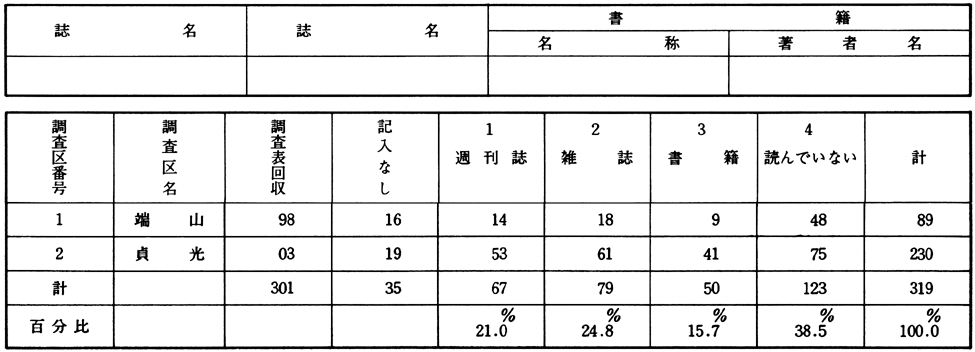 読書に関する世論調査表 (昭和56年8月1日現在) 調査区番号( )調査区名( ) 徳島県立図書館