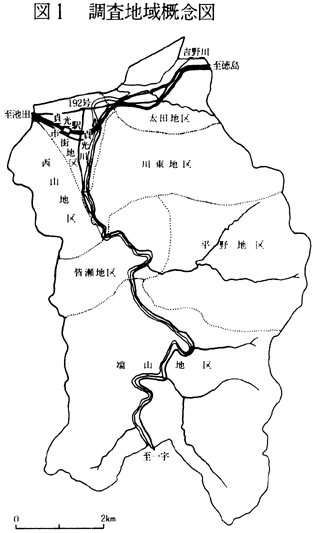 VOL14-2。 4.横畠康吉(1974):阿波の北方、上郡地方における農業の地域構造、四国女子大学研究紀要。 5.貞光町役場(1980):貞光町地域農政特別対策事業推進方策。 6.貞光町役場(1979):農村総合整備計画意向調査集計表。 注 (1)平野地区は、中山・胡麻平・家賀道下・家賀道上・長木・平野・広谷の7農業集落から成立している。 (2)川東地区は、岡・大泉宮内・江ノ脇畠枝・柴内・白村の5農業集落から成立している。 (3)端山地区は、三木栃・木屋・横野・宮平・川見・丸井・広瀬・長瀬・猿飼・日浦の10農業集落から成立している。 (4)太田地区は、太田・道満・僧地の3農業集落から成立している。 (5)西山地区は、大坊・引地・浦山の3農業集落から成立している。 (6)市街地区は、駅栄・大北町・南町・東浦・寺町・野口・笹賀・四ツ辻・祗園の9農業集落から成立している。 (7)皆瀬地区は、皆瀬・井折・竹屋敷・宅能・捨子の5集落から成立している。 |