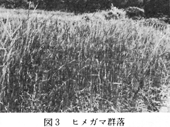 この群落は、本町小仁宇の休耕田約100平方メートルの範囲に発達している、ヒメガマを優占種とする草本群落で、ここは水が絶えず流入しているので、生育できる植物は限られている。ヒメガマ、ミソハギ、アカバナ、スギナ、クサヨシ、セリなどで他の群落と識別することができる。平均出現種数7.6種(付表3)。 (3)シイ・カシ萌芽林
