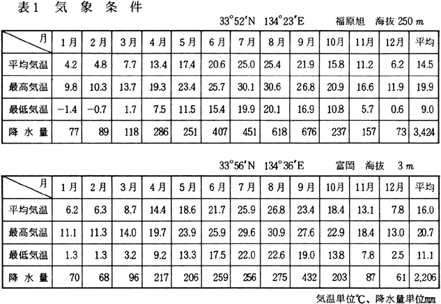 参考文献 1 気象庁 1982:全国気温・降水量月別平年値表,観測所観測(1951〜1978)164〜166 2 中国四国農政局徳島統計情報事務所 1982:徳島農林水産統計年報1981〜1982 3 徳島県農林水産部農林企画課 1972:徳島県地質図,内外地図株式会社 4 宮脇昭 1982:日本植生誌 四国,至文堂 5 山中二男 1979:日本の森林植生,築地書館 |