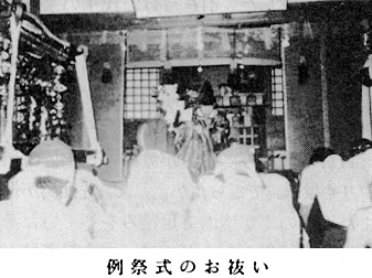 )などと書かれている。当日、当屋が神饌(神酒・洗米・餅・煮干・海菜・野菜・果物など)をお供えし、神職を迎えて祈濤する形が多いが、同じ町内でも各社それぞれに特色がある。そこには氏子を単位にうけつがれてきた素朴な民間信仰の姿があり、山里の根強い信仰を物語っている。以下、そのようすをいくつか紹介しておく。 ア 2