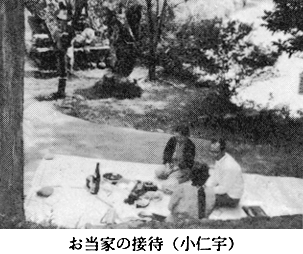 ではお当家が終日地神社のそばにつめ、ゴザを広げてご馳走を並べ参拝者に神酒をふるまう。 カ 12