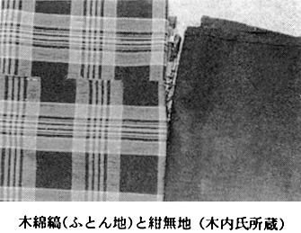 木綿織物は、寛政年間以降に最盛期を迎えたが、それ以前は楮から繊維を水で晒して取り、糸に紡いで太布を織っていた。−般農家や舟乗りの厚司に使用するものである。その厚司が現存する家もある。 上流家庭では養蚕を行い、繭を取り、糸取り器で糸を引き、絹織物として縞柄や白無地に織り上げ、紺屋で柄物に染めて着用していた。はたおり地区や紺屋のある地区は、東の中山地区には少なく、西の土佐町以西の地区に多かった。これは水質の良否によると仄聞した。中山地区や八幡原の地区では、山野に自生する草木で木灰を作り、石灰等を共に自家で染め、紺色だけは紺屋で藍染めにしていた。どの地域でも綿から紡いだ糸は、精練剤として木灰汁でよく煮て、紺屋で適当な色合に染め、木綿縞を織っていた。木綿織物が一般庶民の衣料として使われるようになったのは、寛政年間以降で、鷲敷でもこの頃からであると記録されている。 北地の佐藤染物工場では、明治末期から大正年代迄、家内工業として、織機4〜5台に、織工を抱えて織紺や木綿縞を織っていたが、現在は工場の建物を残すだけである。仁宇の木内紺屋でも織機2〜3台、織工が来て白木綿・織紺・木綿縞を織っていたが、現在では何も残っていない。 はたおりは中流以上の家庭で行われ、下層階級の家庭では、家族全部が働きに出たため出来ていない。前述のとおり、桑野や富岡の織元から糸を求めて賃織りをしていた家も、鷲敷全村で30〜50戸あり、織物にたずさわる人も120〜130名はいた。今でも、74・5才以上80〜87・8才の方々から、元気に昔のはたおりの苦労話を聞ける。 山間の冬は厳しい。手をかじかませながら織機を織ったり、あくぬきした糸(木綿)を那賀川で洗ったりしたこと等、昔話は尽きなかった。白木綿は裏地や肌着の襦袢や、腰巻・褌として使われたようである。 「鷲敷町史」には、昔の藍作についての項目がなかった。しかし、那賀川関係他町村で調べたところでは、藍作が行われていたと思われる。故老の方々を中心に細部にわたって調べると、前述の如く土佐町に10戸程、1町5反余り、家によっては1反余りの藍作という零細な規模であった。仁宇でも20戸位が10町歩余り、阿井でも22戸程度が5町歩余りの反別を、明治から大正期にかけて耕作し、葉藍として地元の紺屋や、桑野・徳島・北井上村の藍商人に売却していた。余り上物ではなかったので、地元の紺屋にもよく捌けなかったようである。 藍の品種も赤茎であったというから、赤茎千本の品種であろう。地元の紺屋では、不足分だけを地元からの購入にあてたもののようで、自家で藍玉に造製して使ったという。 藍作りと共に、煙硝の製造も文化5年小家御蔵百姓新助忌外に命ぜられた。文化8年には、元木辰太郎が阿井村の百姓に煙硝製造御用仰付をしている。幕末まで煙硝の製造が続いた。煙硝は阿波藩の火薬所有高に影響するので、特に製造を要請された。北方藍作地のほか、海部郡の村々でも、また阿井村からも堆肥製造時の副産物として生産されていた。仁宇村で煙硝の製造が行われたと伝えられるが、定かではない。 この度の調査では、当地の藍作りは明治22年頃という結果を得たが、やや不充分である。この地の煙硝の製造年が文化5〜8年であるところから、藍作もこの年代に遡ると考えられる。他の殻物に比し、藍ほど堆肥を必要とするものがないからである。 阿井という地名にしても、「鷲敷町史」に由来が解説されているが、私共の調査資料によると、平安時代に藍を「多天阿井」と記述されている。昔の藍作地の地名も、阿井と呼ぶようになったとある。藍は畑地の栽培で、水田の少ない所で耕作された。したがって、土佐町・仁宇・阿井は畑地が多く、しかも地味肥沃で藍作に適していた。藍作りが廃れてからは、養蚕が盛んになり、桑畑がとって代わった。 北方の藍作も、土佐町・仁宇・阿井と同様の経過を辿って今日にいたった。藍作の条件が酷似していたのによるのであろう。反当たり藍の収穫量も、普通で80貫目、日照りの続いた年で50貫も穫れたら上作であった。葉藍1貫当たり30銭から50銭で、徳島の藍商人に引き取られたという。農家によっては、高く売却できた家もあった。 反物を織り上げるには、木綿織物の場合は、棉作り・種取り・糸紡ぎ・精練・染色織り上げの工程である。太布も同じく、楮から糸紡ぎして織り上げ、絹織物は養蚕・糸引き・精練・染め上げ・織り上げの工程。なかには、精練の工程をはぶき、織ってから精練して友禅柄に染める場合などもある。交通に不便な土地柄のため、凡て自給自足で、染物屋を総称的に紺屋と呼び、紺屋には八幡原で昭和初年まで原幸吉さんが、藍がめ6本で糸染めを専業にしていた。藍は徳島から取り寄せ買っていた。昭和5年頃に紺屋を廃業し、和食へ移住した。 北地一区の佐藤染工場では、織機4台で織紺を織り、藍は徳島から買い、藍がめ6本で糸の藍染や無地の布染、蚊帳を、藍に草木