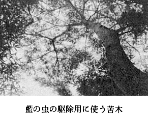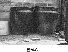藍作りについて: 藍作は天智天皇の時代、全国に藍作奨励の詔勅が下り、忌部一族も高越山麓一帯を開拓して木綿(ゆう)麻と共に、学島村の呉島で行なわれた。村上天皇の時代に全国より藍が献上され、中でも阿波の藍が最優秀であると賞された。以来幾多の変遷を経て、慶長元年播磨の国より藍種を取寄せて、呉島(鴨島町上下島の一部)に試植せしめた。 さらに、慶長4年播磨より藍作技術者数名を招き、藍の移植やら藍作を始め、元文5年には、牛島・上下島・麻植塚・鴨島・内原・中島・飲尾・山路・敷地・森藤・西麻植・知恵島で、反当り20貫から55貫の葉藍の収穫があった。 弘化2年には知恵島で16戸の藍商があった古記録がある。大正6年に藍商としては、鴨島・西尾・森山・牛島・知恵島全部で、92戸が数えられる。 明治25年には、藍作反別771町歩、藍作戸数960戸があり、山際の地域では、小上粉・赤茎千本・百貫等の品種が作られた。平坦の地では、紺葉や椿葉が主として栽培された。藍玉搗きの家も、各地域に3〜5戸、■作りの家も20〜30戸位あった。藍作農家では、近くの藍商の家へ葉藍のまま売却する家もかなり見られた。出来るだけ近くの藍商へ売ることにしていたと思われる。 藍商も、鴨島で「野木勇」「川真田徳太郎」「戸田禎三郎」、西麻植の「工藤鷹助」「工藤謙太郎」、飯尾の「石原六郎」「石原善助」「須見千次郎」、知恵島の「笠井嘉之次」「片岡多三郎」、牛島の「藤井伊蔵」等があり、ほかに「蓬庵光明録」に名を連ねている人が多くいた。 飯尾の「高橋嘉平」は、名西郡高原村平島より飯尾に移住してきたもの。明治34〜37年に、■作りの時に撤水した葉藍の下に、藍の茎だけを並べて、莚を敷いて醗酵を促進させる方法を開発した。さらに大正8年には、中南米のグワテマラ藍や、インド藍・ジャワ藍の輸入を行って商品として売却した。 古くは、鴨島(呉島郷)の呉島で、上物用として高麗藍を、中物用として京藍を、下等用として広島藍(芸州藍)を栽培していた。藍の虫の駆除には、苦木(にがき)を煎じた汁を撤布した。ほかの野菜を食害する虫の駆除にはアセビを用い、判然と区別していた。 知恵島の千田塚を中心として10数戸の藍商の家では、椿葉を主に栽培し、沈澱藍(明治以前は青藍)を採取していた。反当り上物で5貫、中物で7貫、下物で10貫の採取量があり、反当りの金額も■の何倍にもなったが、生葉藍から直接採取する為に労力と手間がかかった。藍こなし時期と重なるので、余程の人員が居ない限り採取因難だった。 藍商が出荷する品目は、葉藍・■・藍玉・阿波正藍とあり、阿波正藍とは沈澱藍をいうのである。普通藍商では多くて2床位であるが、中には1床400貫を3〜5床の規模で■作りをしていた家もあった。毎年2月頃には藍の大市があって、良い物には天上・日本瑞一・准一の表彰金札が与えられた。現在藍作農家は2戸だけである。