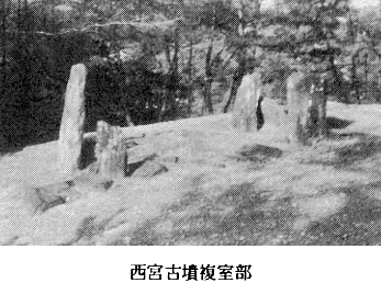 忌部山型石室の古墳は麻植郡内に22基、鴨島に4基確認されているがとくに鴨島町敷地の西宮古墳は玄室前に玄門と羨門を持つ複室部が祭祀の場ではなかったかとも考えられ、また忌部山型石室のルーツを説く有力な手がかりとして注目されている(注1)。