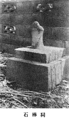 字飯尾の工藤家では屋敷神として石捧が祀られている。註8 麻植郡山川町の忌部神社 の北方、国鉄山瀬駅から線路に添って東へ数百mいった、線路の南側の道路脇にも数基の石捧が祀られている。石捧信仰祠は古くから開発されていた鄙(ひな)びた地域に時折り見かけられるが、その一方で平安時代頃から仏教と習合して地蔵や道祖神とも混淆して民間信仰として現在に伝えられた。今から30数年前字敷地部落で一番古いといわれてきた大村家横の地蔵祠を道路拡張のため移転した時、祠の直下の地中から直径10cm長さ20cmばかりの両端がふくらみ丸くなって、中央がくびれた、米表をやや長くしたよう石造物1個だけが出土した。川島町城東にも此のような石造物が祀られていた祠があったことを川島町文化財保護審議委員喜多弘氏よりきかされた。阿波の山間部の古い地蔵祠には石像の無いものがある。石造地蔵尊の紀年銘を見ると江戸時代中期以降のものばかりであった。他の地域の例では地蔵の前身は道祖神ではなかったかと思われる程に、名を聞かねば何の祠かわからない場合がある。道祖神には今も石捧または石捧類似のものを依代として祀っている祠もある。長野県では男女双体の道祖神が多いが鴨島町には1石に2像を刻んだ双体庚申塔があり、地元では「庚申さん」と「おふなたさん」だと言っているが、船戸神は12人の子があると言われ、増産の神、塞の神として信仰されている。氏神を中心にして地蔵尊も道祖神も船戸神も庚申も性神信仰と祖霊信仰を基礎としながらそれに仏教信仰が混淆して、古代から人々の心をささえ、そのなやみに応えて今日の文化を育てて来たと考える。