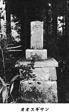 オオツキダメのヤマノカミサン 山道を作るために若干東に移動している。かつて桜の大木があったという。(山の神の木を切ってはいけないと言いつたえがあったので、伐採にあたっては神職にたのんでよく拝んでもらったとのこと)。