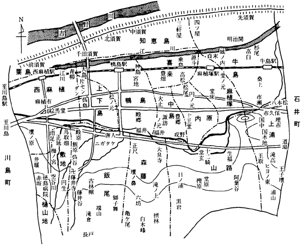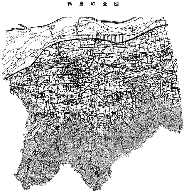 II 鴨島町の地名考 A はじめに 地名のいわれの解明は、何回も何回も現地を歩いてみることが鉄則であるといわれているが、それは地名が地勢、地形、地質などによって多く名づけられているからであるといわれている。 和銅6年(713)の詔に「幾内、六道諸国郡郷の名、好字をつけよ」とあり、また延喜式(927)の民部式に「凡そ諸国、郡内、郷等の名、二字を用い必ず嘉名を取れ」とあり、古くからあった地名は、その当時使われていた古語や方言で名づけられているのが多い。そしてそれに良い意味の漢字を適当に意味に関係なく、しかもなるべく他の地名に混同しないように変化をつけてあて字しているのである。 このことは全国の地名を究明してみてはっきりと証明することが出来る。 鴨島町の地名を研究するうえで注意すべきことは、吉野川平野は1500年位前は、浦社あたりまで海が入り込んでいたといわれていることは学界の常識であるから、その当時の鴨島は現在より土地が低く吉野川(当時は江川が本流のデルタ地帯であったはずである。 鴨島の平地部は現在でも起伏が多く、河跡が歴然と残っていることは、その名残りであろう。それで鴨島の地名はこのような地形に対して、名づけられたのであると思われるが、現在は全部開墾されて川原の石塊は取り除かれ、川底であったり池であった所は排水路が設けられたり客土されて乾田化していて、地名と現状が合わない場合が多いが、これは名づけられた当時の土地の状態によって判断すべきであろう。 B 鴨島の古名「呉島郷」について 呉島(くれしま)の名は全国にも多いが鴨島町全域はこの地名が名づけられた1300年位前は吉野川のデルタ地帯であり、砂礫地の川原であったと思われる。 現地名として残っている呉島(上下島字呉島)は低地で大正初期に現在の吉野川の堤防が完成したにもかかわらず最近まで家も建てなかった位の低湿地である。 現川島町にも「呉島」地名があるが、ここも低地で、しかも石塊地で戦後の昭和30年位まで草も生えないような土地であった。 他の例などからも考えると呉島とは石塊地の塊のあて字ではないかと思われる。 地名はどの地名を見ても大部分が漢字をあて字してあるが、その漢字から伝説が生まれるのが習わしである。この地名も呉の国から織人が来て機織りの技術を教えたからだとか、また町内に唐人・カラ谷・クレ谷等の地名や川の名があるからなおさら呉人伝説が間違いないといわれているが、果たしてそうであろうか。 地名学からいえば唐人は方言「ゴーラ処」で石くれ地の処のこと、から谷、くれ谷も同じような意であり、これは全国で例が多い。 果たしてどちらが正しいであろうか。 C 鴨島町の旧名「麻植保」と「麻植郡」について 麻植とは「古語拾遺」に「阿波国殖穀麻種其商今在彼国」云々とあり忌部氏が雑穀の粟等を奨励したから国名を阿波、麻を植えさしたから郡名を麻植と名づけたということが最近までは定説になっていた。しかし阿波の語源については縄文時代から稲作が行われていたのに忌部氏が活躍したといわれる古墳時代の粟作が阿波の国名の語源であるということは現学界ではナンセンスになっている。麻植についても奈良正倉院御物の中に天平4年(723)川島から忌部為麻呂が黄■(きいのあやぎぬ)を戸調して納めてあるし、若しも呉の国から織女が来たとすれば中国では3000年も前に已に絹が生産されていたのにその織女が来て綿よりもおとる麻を作らし、麻織を教えたということはおかしい。日本でも古墳時代已に絹が生産されていたのであるので忌部説はつじつまが合わない。 また麻植地名は郡名として奈良時代当時あったが忌部氏の本拠地である川島以西には町名、大字小字地名として残っていなくて現在鴨島町に大字名として西麻植、麻植塚が、小字名として麻植市名が残っていることからいっても忌部の伝承から関係が無いように思われる。 麻植塚は本流であった江川と支流飯尾川に囲まれた低地帯で一旦氾濫すれば水没するような所、麻植市は吉野川の水が洪水の時は川島の城山にぶち当たった水が渦を巻いて鴨島町の中で一番先に押しよせて来る所で河跡湖や水溜りがあって麻植塚と共に大江状の地形の所である。 鎌倉初期に現鴨島町地区が地名「麻植保」であったということは水溜や川原の中に江状の土地であり、それに対して名づけられたのではないであろうか。 また麻植のオを尾根の尾とすれば尾江で、南から山の尾根が幾つも突き出ていて、平地部は江状のデルタ地帯であった地形に対して名づけられたのかもわからない。 これも果たしてどちらがほんとうであろうか。 D 「鴨島」という町名について 鴨島(加茂島とも書かれている)と同じかも地名は県内では三好郡の旧加茂村、徳島市の加茂名町加茂町、阿南市の加茂谷、石井町の賀茂野などであるが、共通するのは古代では河底や川沿の土地であった。 この内、三好郡の加茂は京都の賀茂神社の社領であったことが記録に