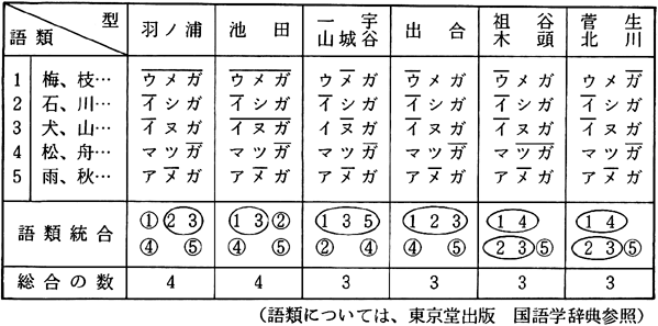 I アクセント 羽ノ浦方言のアクセントを他の地域と比較すると下表のようになる。
