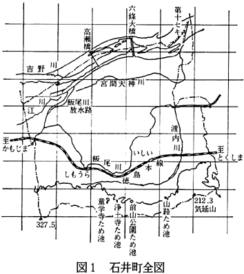 2.調査地区と調査方法 石井町は平野部の占める割合が高いため、平野部の調査に重点を置いて、主として次の5つの項目について調査を行った。 1