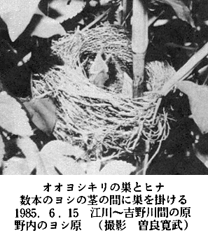 参考文献 1)日本野鳥の会 1980:鳥類繁殖地図調査 1978:第2回自然環境保全基礎調査 動物分布調査報告書(鳥類) 全国版 2)高野伸二 1981:日本産鳥類図鑑 東海大学出版会 p.184〜389 3)藤波不二雄 1983:ヨシ原の面積とオオヨシキリの囀り雄の個体数との関係 Strix