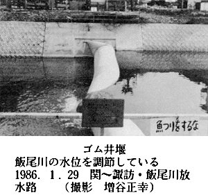 特に飯尾川については、関〜諏訪地区から吉野川に至る放水路があり、ゴム井堰と揚水場によって水量を調節するようになっているので、これらをうまく利用すれば改修・護岸工事は殆んど必要がなくなるのではないだろうか。 4