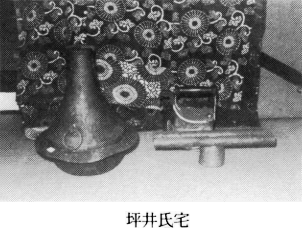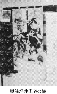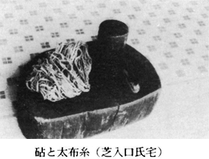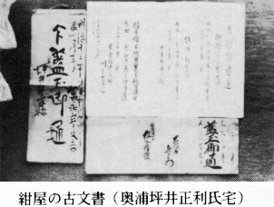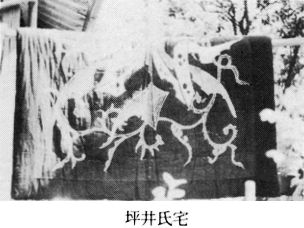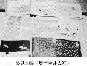 紺屋について 奥浦には坪井又四郎の紺屋があり、寛永年間に海部城主と共に大和国より来て、■大和屋、坪井の名で昭和25年頃まで、大幟・内幟に武者絵の描染、祭礼用の幟や鯉幟を主に染め、糸染・紋付の型染や風呂敷・幕を、藍がめ12本を据えて染めていた。藍の買入れ先は、藩政時代に姥ケ島の江尻万五郎、川原田の富永宇之吉、国実の岩佐屋兵右衛門、岩倉のセ■北巳屋ほか源左衛門等があり、明治になって、西覚村の板東利三郎、永■巽永五郎、西中富の犬伏、北新居の大寺藤三郎、高橋弥太郎、上六條の鳥取角太等であった。 藍の値段は、嘉永5年藍玉2本430目(匁)。文久3年藍玉2俵520目と1俵350目と、7俵で2貫100目。文久4年藍玉1本600目。安政3年藍玉飛切4本1貫280刃。明治13年には、藍玉2本22円。明治18年■7本(俵)70円。明治22年藍玉1本8円また5本45円で購入され、川東村の縁故先へも分譲していた。 染料や染材となる酷酸アルミナは、酷酸と明ばんで製造し、鉄奨は硫酸鉄と硝酸食塩で製造する。マチンエキス・モモ皮エキス・柳蓼・茜・刈安・紅花・コブナ草・車輪梅・カキツバタ・クチナシ・山桃桜等の植物と草木灰、消石灰で絹布・綿布の黒紋付等を染めていた。坪井紺屋は、明治になって宇平となり、保郎・折蔵と替って代々続いてきた。 高園の富田正次郎が明治から大正まで。折戸の谷田尉次郎は、昭和初期まで糸染・織紺・幟を1反分50〜80銭で藍染した。脇の宮の三間藤吉は、奥浦の坪井で修業し、昭和10年頃まで糸染をしていた。奥浦の新紺屋福島春吉は、口径2尺深さ5尺の藍がめで、昭和10年頃まで糸染。大井の富田国三郎は、明治28年頃まで糸染。櫛川では農家が自家用に桃皮等の草木染をしていた。 川東村の坪井紺屋は、奥浦の坪井正利氏の祖父の弟で、大里・四方原にそれぞれ1戸づつの紺屋があった。染賃は、浴衣地1枚50銭で、股引きやシャツは1枚30銭、着物1反1円50銭で染めていた。これらは昭和初期頃の値段である。紋付は坪井紺屋独特の染め方で、海部染色圏の中心になっていた奥浦には、他地方から技術習得のために修業に来る人もいた。 使用された藍がめは、1石8斗入りのものが多かったが、なかには1石3斗入りのものもあった。 藍の買入れ先は、何処の紺屋も殆んど北方からで、なかには、日和佐や富岡の藍商から購入していたのもあった模様である。坪井紺屋と協同で購入していた家もあった。