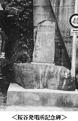 明治・大正・昭和の45年間、県の産業経済発展の動力源としての役割を果した桜谷発電所も、今は往時の面影もなく廃虚となって那賀川沿いの音谷の山中に旧跡をとどめている。昭和53年12月に、上那賀町と四国電力株式会社の両者により、桜谷発電所は、四国の水力発電の歴史を知る貴重な文化史蹟であるとして、発電所跡近くの国道桜谷トンネル東口に、次のような碑文を刻む記念碑が建立されている。