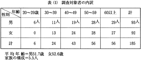 私ども農村医学班は、総合学術調査に参加して、総合的な集団健康診断を行うとともに健康と農業に関するアンケート調査を実施した。アンケート調査のまとめの中から主な項目を抽出して報告する。まず、調査の対象は、松茂町内で主に農業を営んでいる男子93人、女子92人、合計185人について、平成2年7月31日より8月3日の4日間にわたって調査した。