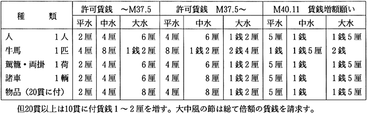 ―2 別紙 仮橋通行賃銭額表